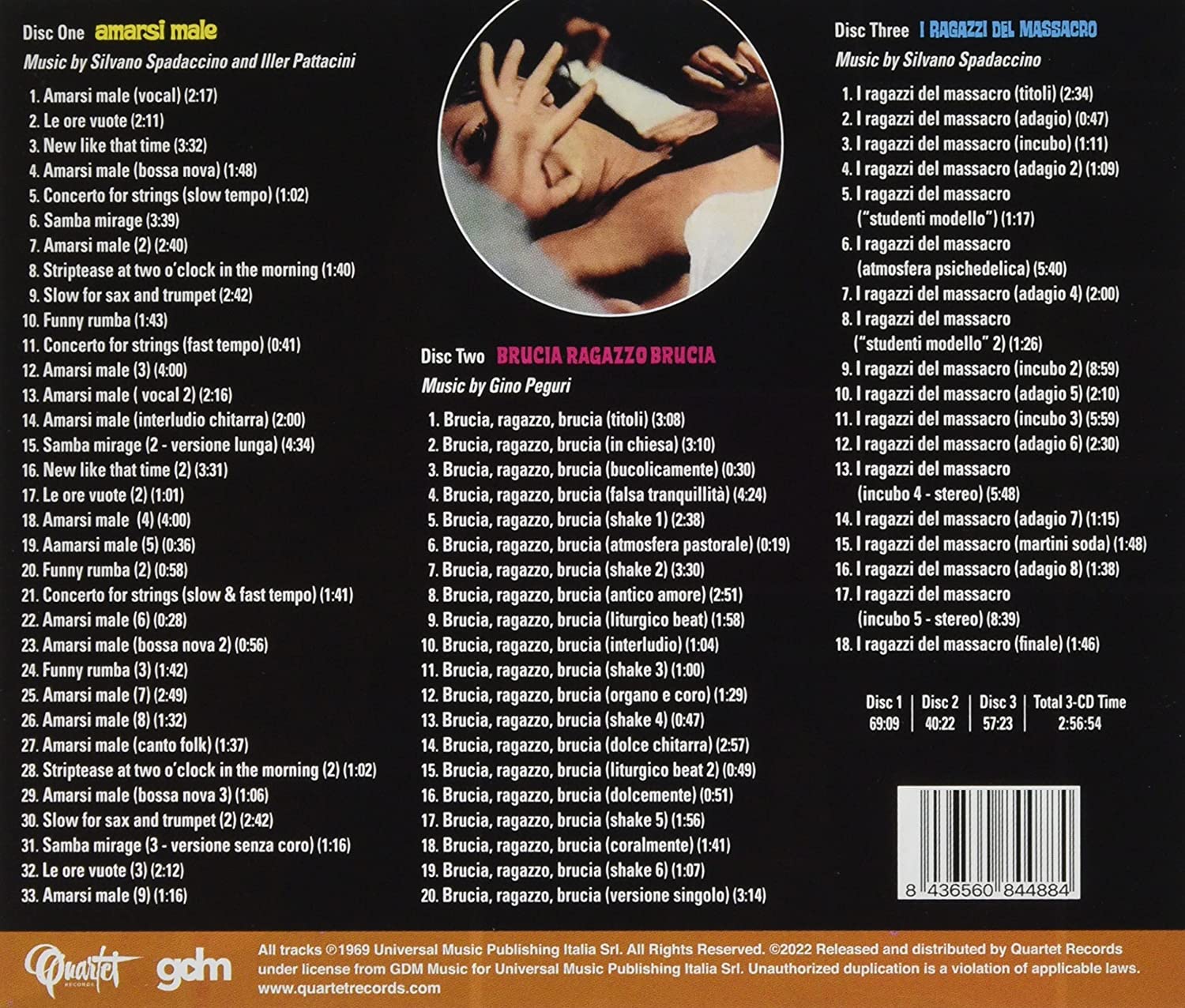 Quartet Records, in collaboration with Universal Music Publishing Italia and GDM, presents a 3-CD box set with the premiere releases of three scores from Fernando di Leo’s insane trilogy about love, sex and madness – all released in 1969!